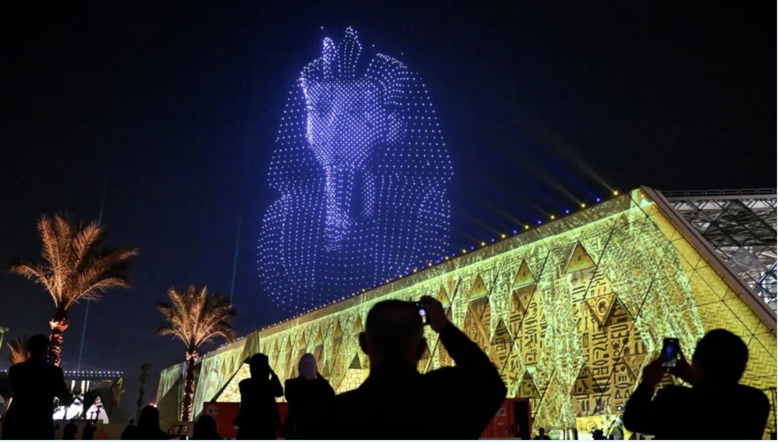 شدّت انتباه العالم وتسمّر الآلاف أمام الشاشات للمشاركة بالحدث العظيم. أمام واجهته المهيبة الممتدة على هضبة الجيزة، حيث تُظلّل الأهرامات الرمال الذهبية التي كشفت لنا بشوقٍ وكرمٍ كنوز القدماء، وقف الحضور.
